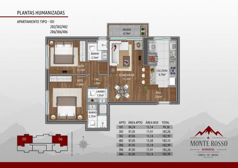 • Área Privativa: 76,62 m²