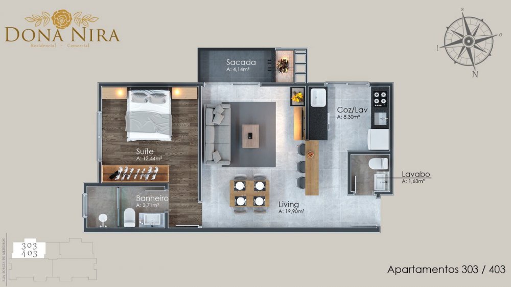 - Perfil: Apto Decorado 01 Suíte no Centro