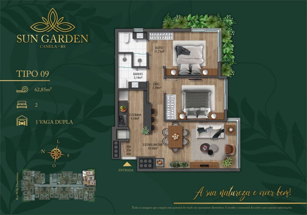 - Área Privativa: 62,15 m²