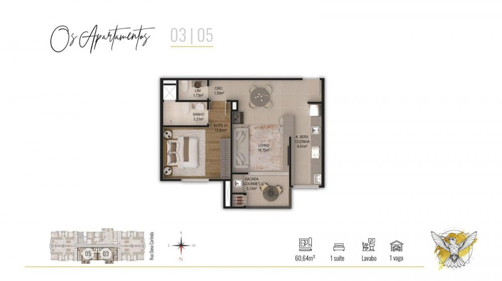 - Área Privativa: 60,64 m²